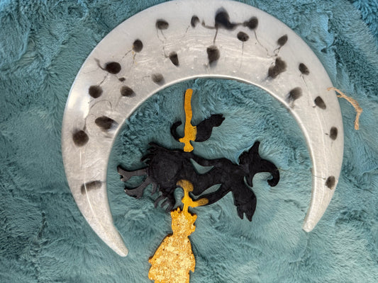 Witch hanging from moon