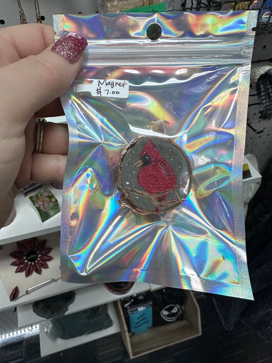 Wood slice cardinal magnet