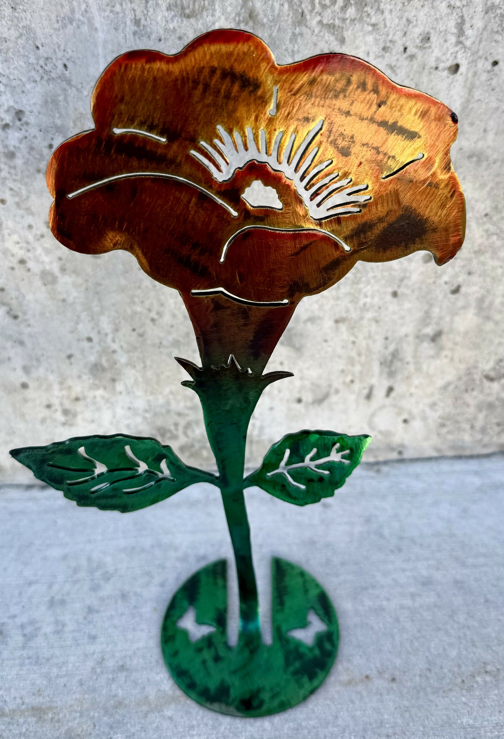 Painted standing metal trumpet flower